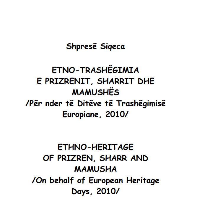 ETNO-TRASHËGIMIA E PRIZRENIT, SHARRIT DHE MAMUSHËS/Për nder të Ditëve të Trashëgimisë Europiane, 2010/